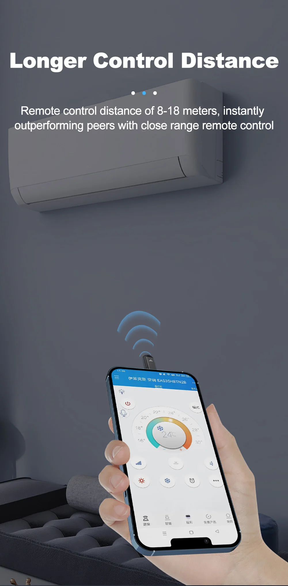 Remote control distance of 8-18 meters, instantly outperforming peers with close range remote control