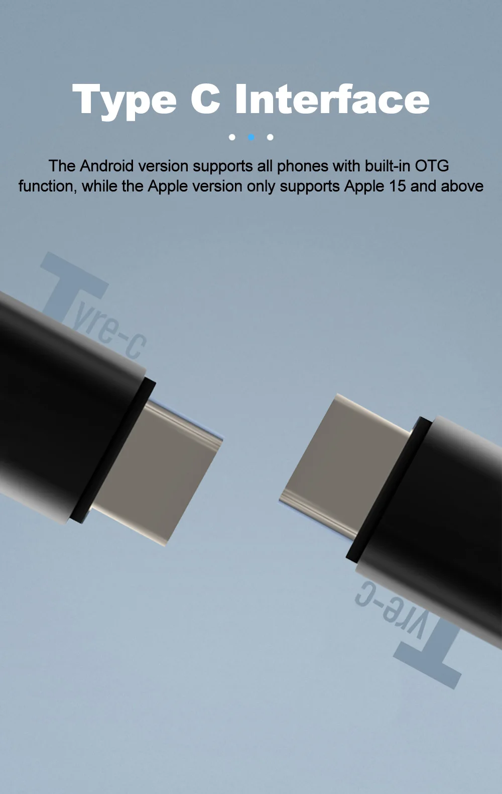 The Android version supports all phones with built-in OTG function, while the Apple version only supports Apple 15 and above